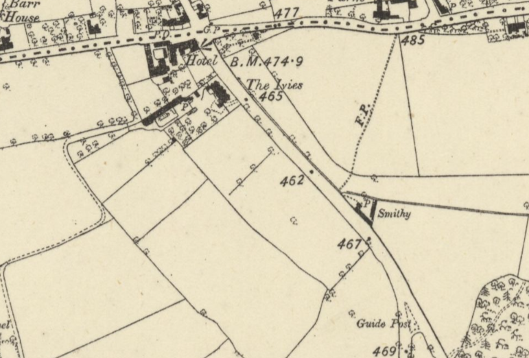 Maps show the presence of a Smithy between the Scott Arms and Old Walsall Road. near to Scott As Scott arms around 1886.